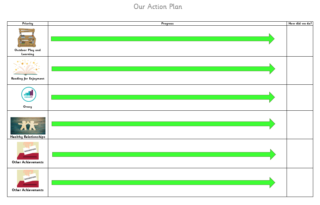 Our School Council members have created an Action plan linked to our School Development Plan. This year, they will be coming up with ideas to support each of the areas on their plan. If you have any ideas that you would like to share with School Council, please let us know by posting a suggestion in our Suggestion Box in School.